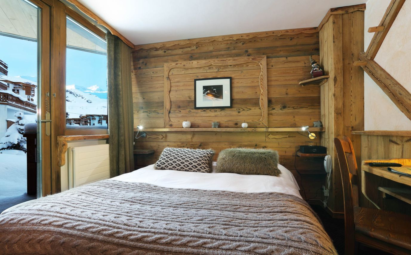 Деревянный декор в стиле шале, постельное белье с пуховыми одеялами, телевизор с международными каналами, сейф, док-станция для iPhone и iPad.
